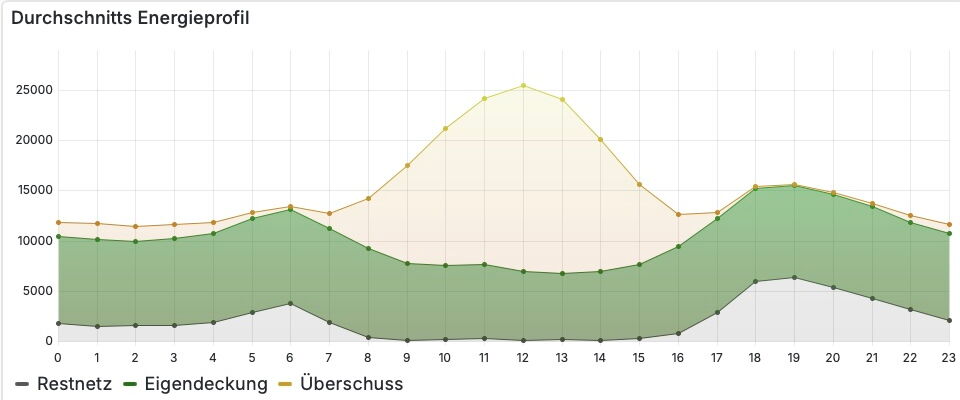 Wir möchten gemeinsam möglichst die verfügbare Energie in unserer Region nutzen. Bei sonnigen Tagen haben wir IMMER Überschuss zwischen 10:00 und 16:00. Daher ersuchen wir ALLE möglichst Ihre Verbräuche in diese Zeit zu verlagern. zB Waschmaschine, Warmwasser, Laden von e-Auto.
